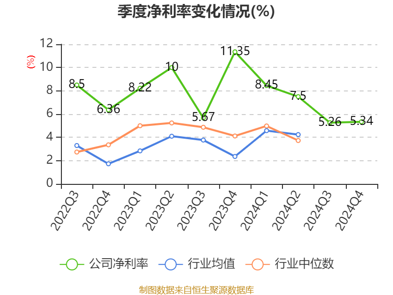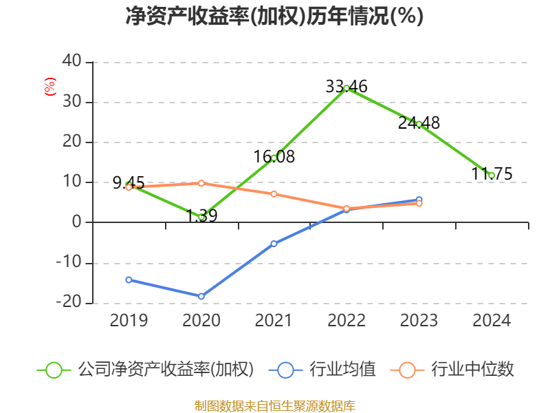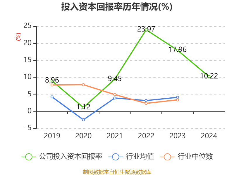 数据显示,2024年公司加权平均净资产收益率为11.75%,较上年同期下降12.73个百分点。公司2024年投入资本回报率为10.22%,较上年同期下降7.74个百分点。