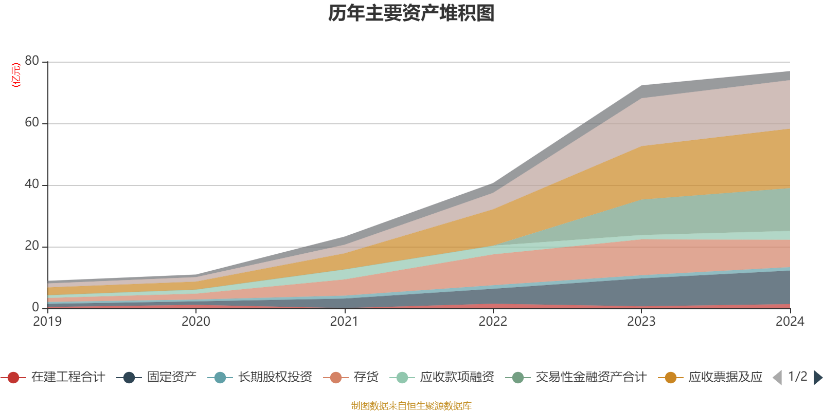 资产重大变化方面,截至2024年末,公司存货较上年末减少23.97%,占公司总资产比重下降4.59个百分点;交易性金融资产合计较上年末增加20.74%中金优配,占公司总资产比重上升2.15个百分点;应收款项融资较上年末增加106.63%,占公司总资产比重上升1.81个百分点;固定资产较上年末增加20.27%,占公司总资产比重上升1.64个百分点。