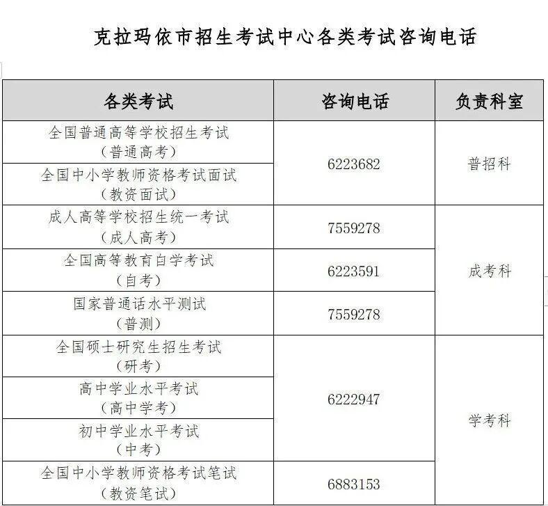 附:克拉玛依市招生考试中心各类考试咨询电话