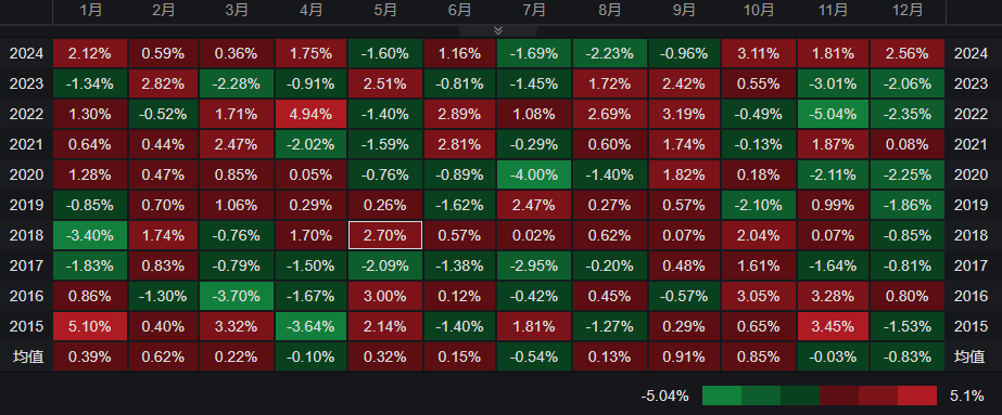 在以科技股为主的纳斯达克综合指数方面,自从2009年以来,纳指也只有在去年的7月出现过下跌,而在此之前已连续15年在当月上涨。