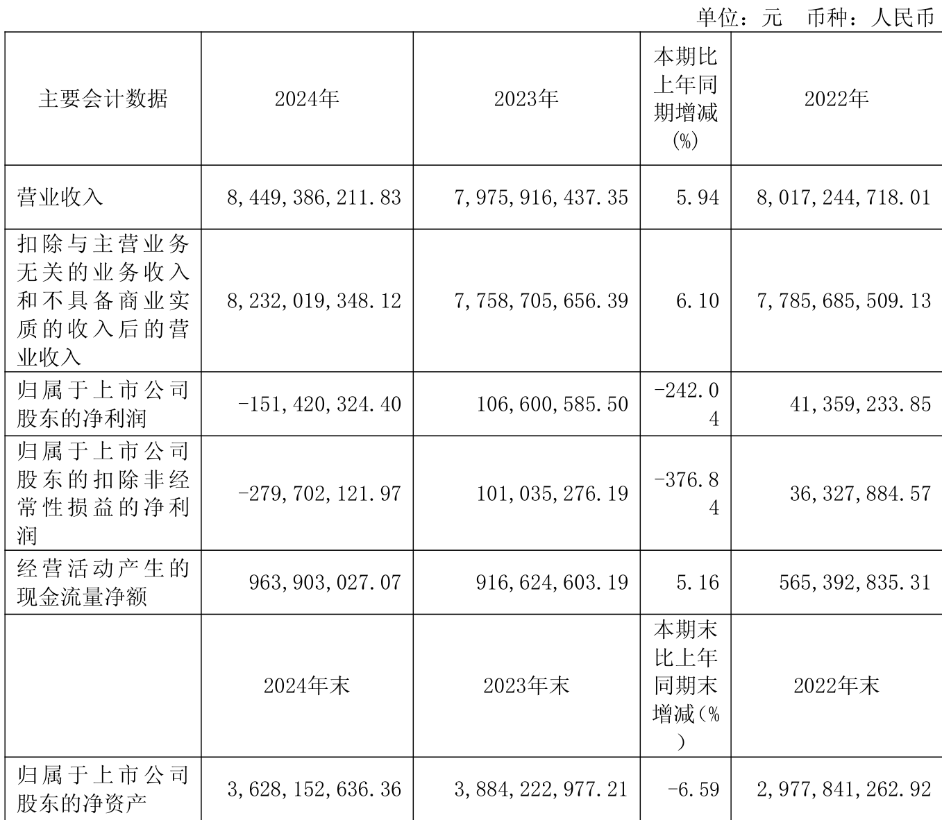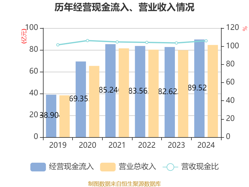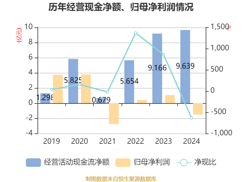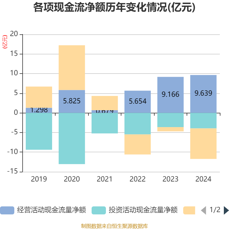 截至2024年,公司经营活动现金流净额为9.64亿元,同比增长5.16%;筹资活动现金流净额-7.78亿元,同比减少6.7亿元;投资活动现金流净额-3.95亿元,上年同期为-3.63亿元。