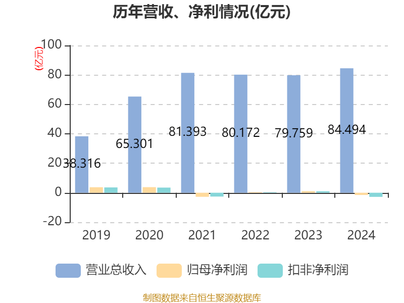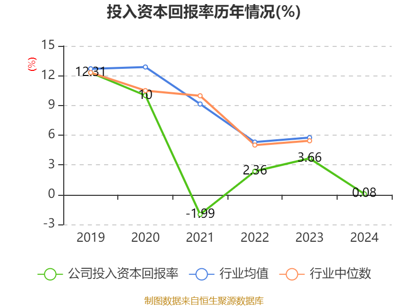数据显示,2024年公司加权平均净资产收益率为-3.99%,较上年同期下降7.4个百分点。公司2024年投入资本回报率为0.08%,较上年同期下降3.58个百分点。