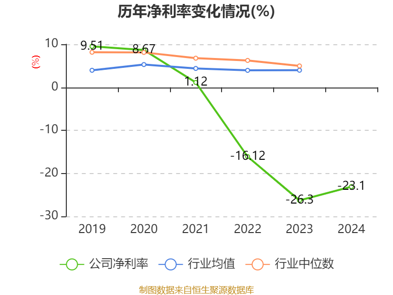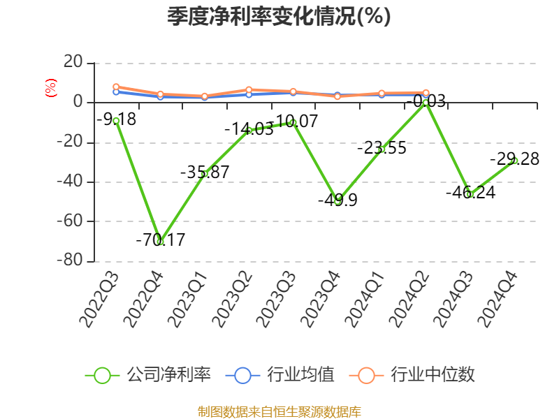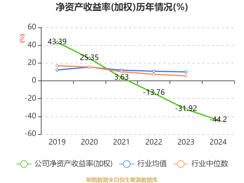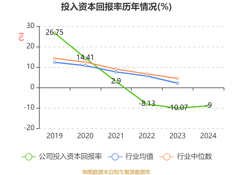 数据显示,2024年公司加权平均净资产收益率为-44.2%,较上年同期下降12.28个百分点。公司2024年投入资本回报率为-9%,较上年同期上升1.07个百分点。