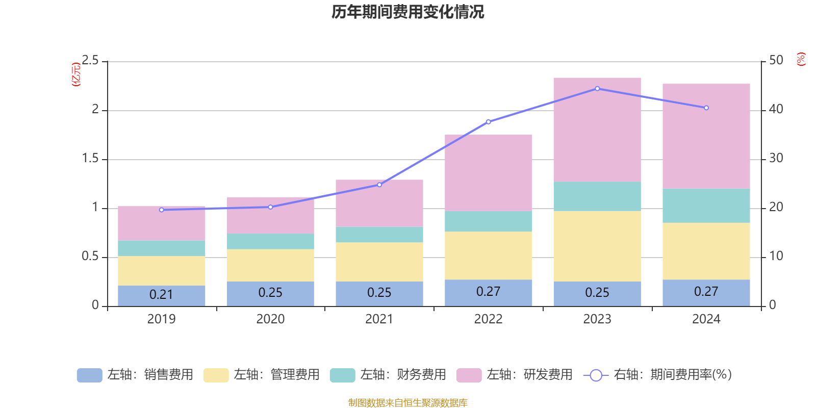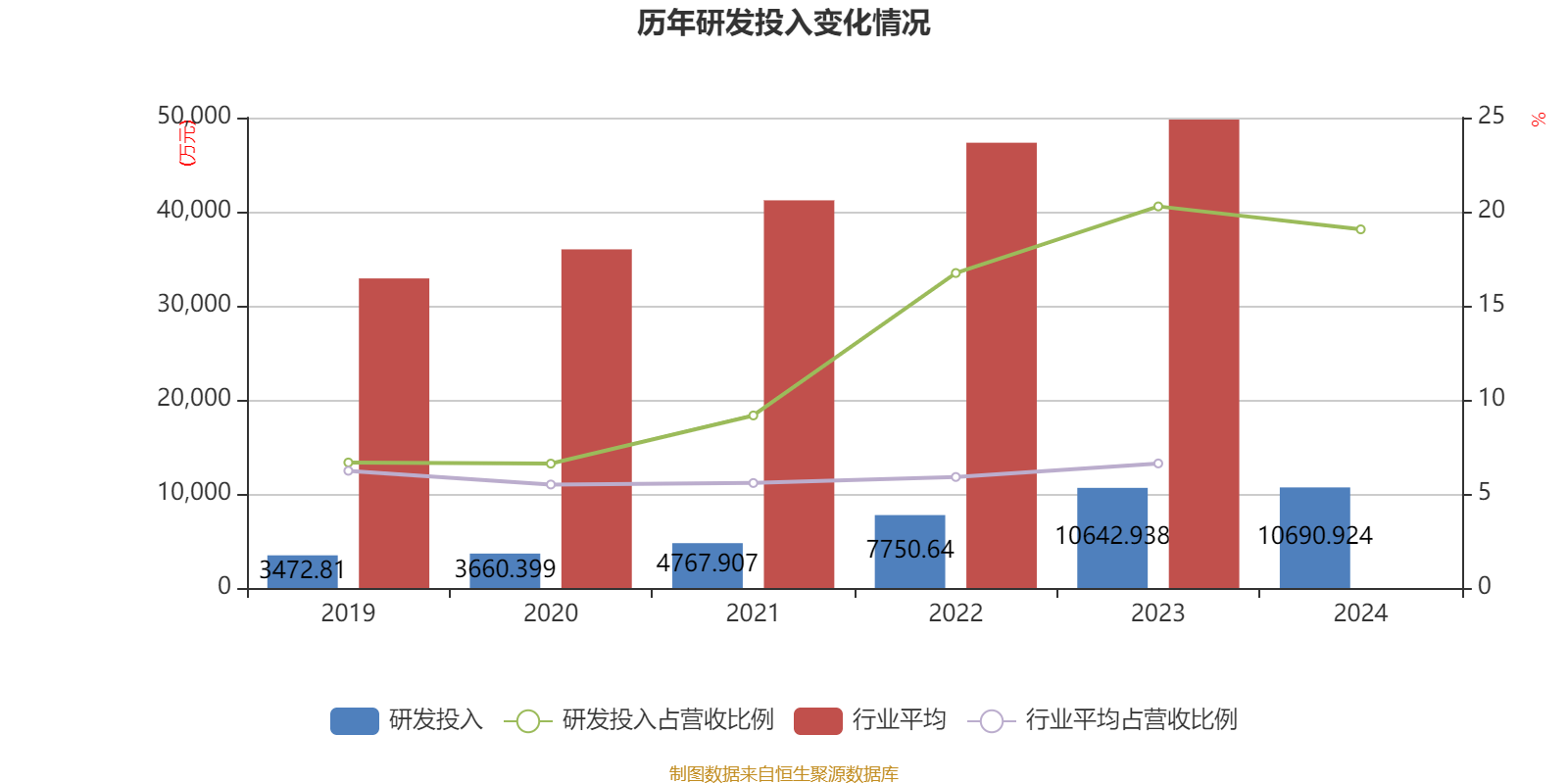 2024年全年,公司研发投入金额为1.07亿元,同比增长0.45%;研发投入占营业收入比例为19.06%,相比上年同期下降1.22个百分点。此外,公司全年研发投入资本化率为0%。